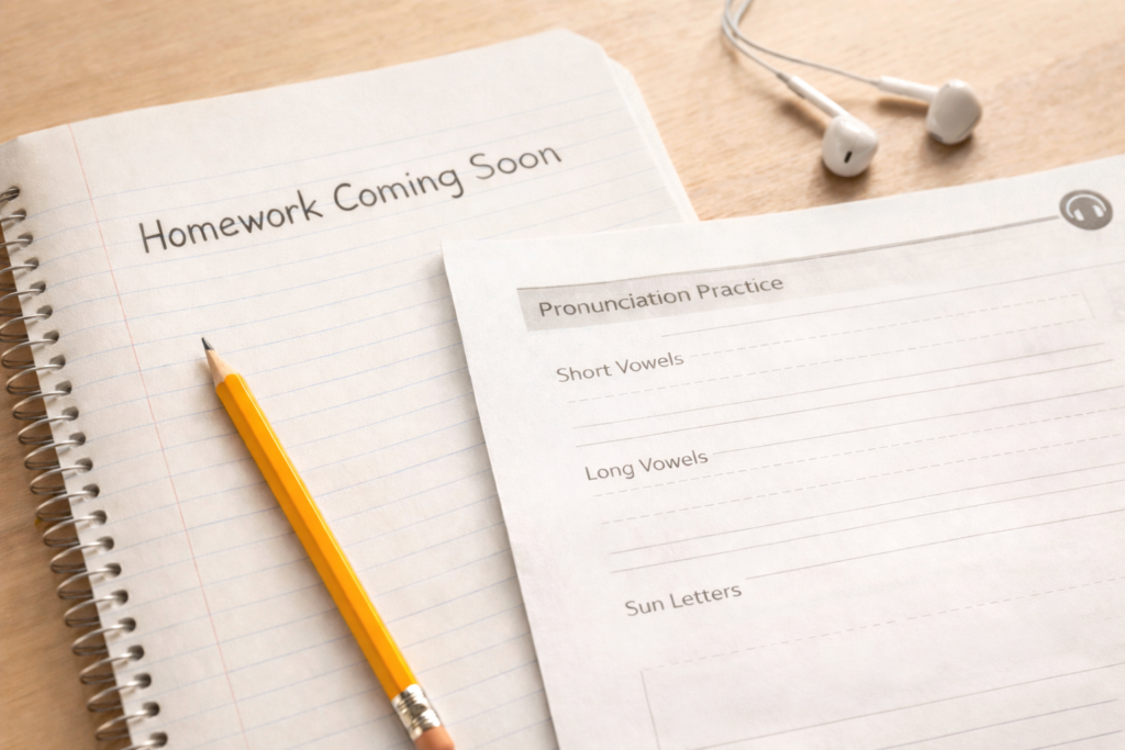 The material below is used for practice, supporting all core language skills — listening, speaking, reading, and writing — so students can reinforce what they learn between lessons.